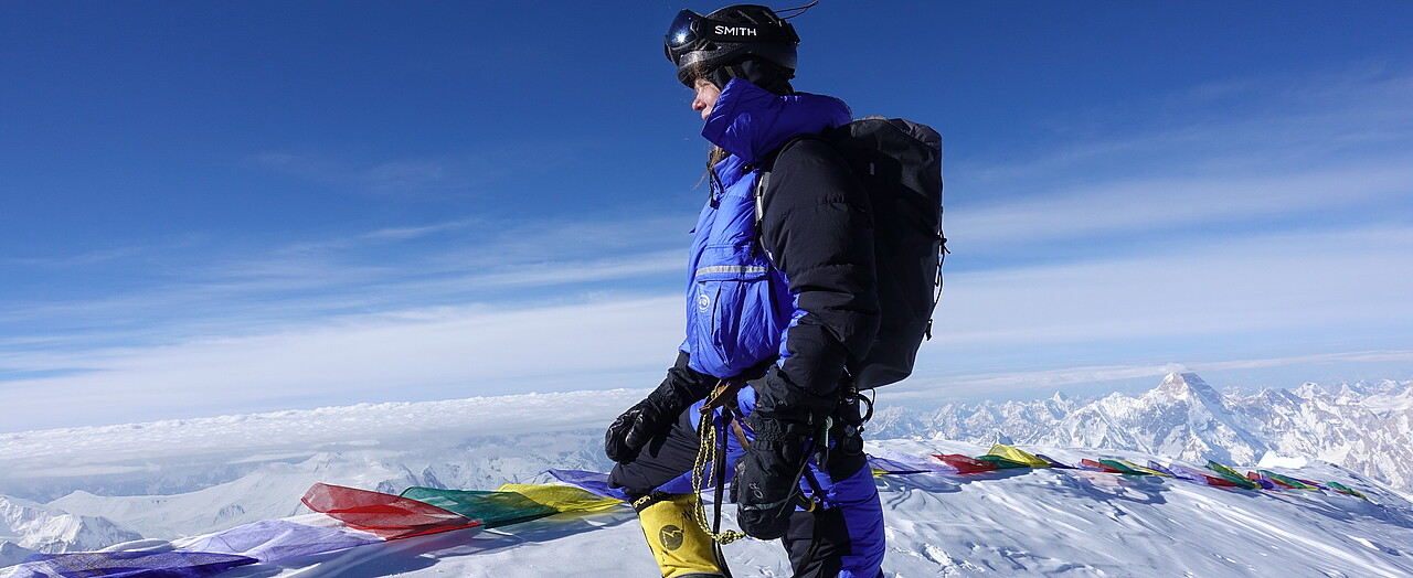 Zwölf der 14 höchsten Berggipfel dieser Welt – mehr als 8.000 Meter hoch – hat die 35-jährige Ostwestfälin bereits erreicht. Zudem absolvierte die gebürtige Bielefelderin, die in der Schweiz wohnt und arbeitet, 1.400 Kilometer zu Fuß von der Antarktis-Küste bis zum Südpol.