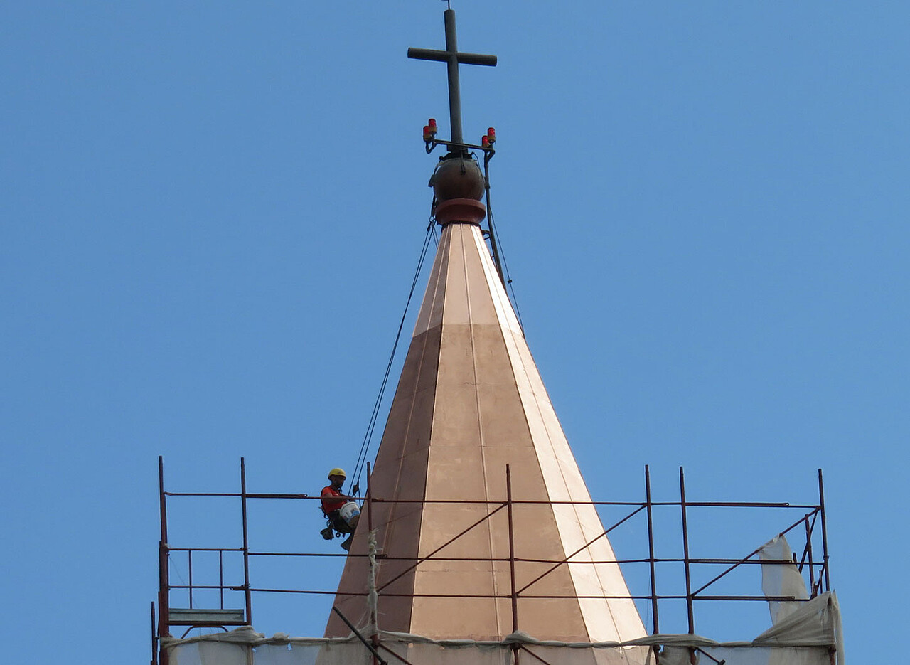 Das Befahren von kirchlichen Liegenschaften mit schwerem Arbeitsgerät, eventuell notwendiger Anmeldungen für Sperrungen von Straßen – all dies kann durch den Einsatz von Kletterern vermieden werden. Bei einem Schadenfall war keine Einrüstung möglich und die fragile Kuppel konnte nicht betreten werden. Die Reparatur wurde durch an Seilen hängenden Alpinisten durchgeführt, ohne die Kuppel zu berühren.