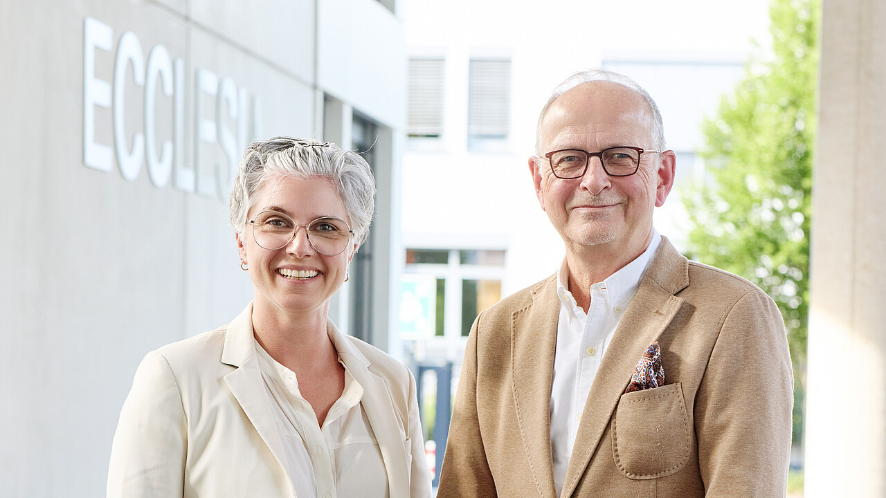 Gemeinsam im Interview: Dr. Peter Kalbe, Vizepräsident des BDC, und Nadja Bürger, Leiterin des Geschäftsfeldes Ambulantes Gesundheitswesen und Mitglied der Geschäftsleitung bei der Ecclesia Gruppe.