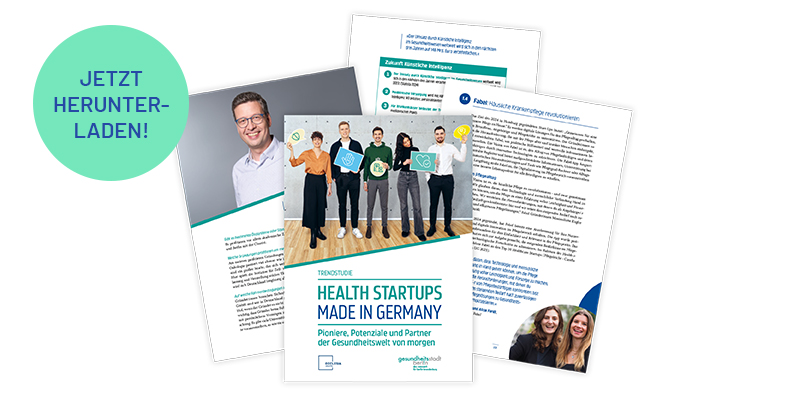 The newly published trend study “Health Startups made in Germany” by Ecclesia and Gesundheitsstadt Berlin offers fascinating insights into the upcoming developments and challenges in the healthcare sector. It shows how innovative start-ups are revolutionizing the market and which solutions will shape the healthcare of tomorrow. From digital healthcare services to innovative medical technologies - read now how these players are setting new standards.